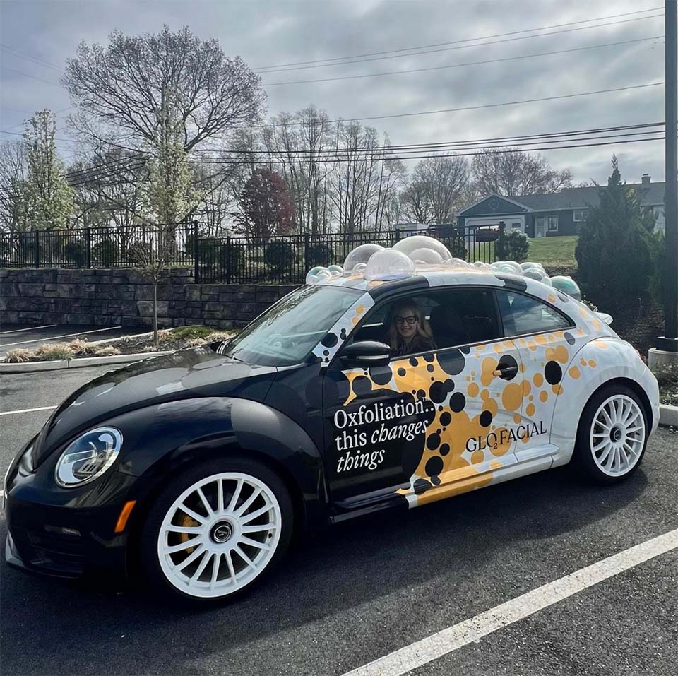 We built the Glo2Facial Bubble Bug, a customized bubble blowing car that travels the country to promote Glo2Facial by Geneo treatments which uses CO2 bubbles to exfoliate the skin, LUX ultrasound, detox massages, and even lymphatic drainage. Brand Ambassadors also give out promotional “Bubble Bucks” which are redeemable at participating spas and clinics such as ‘Smiley Skin Beauty’ and ‘Renewal Skin Spa’. New clients can receive a $50 discount on their first treatment with a Bubble Buck coupon handed out by the bugs.