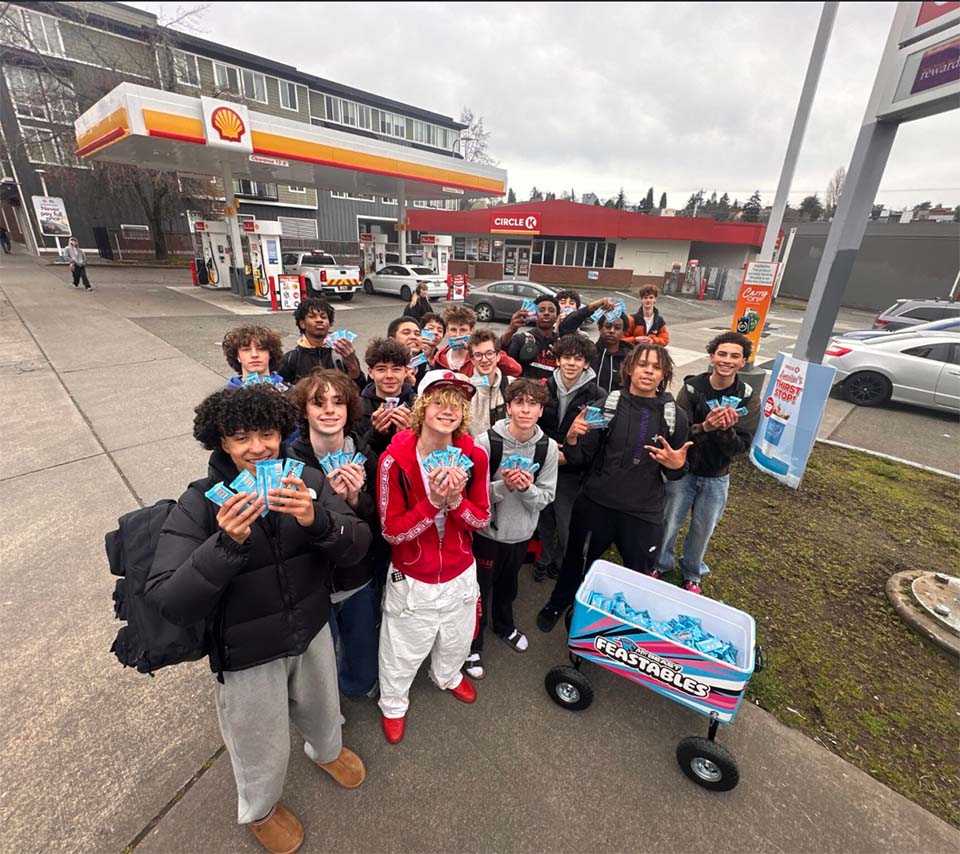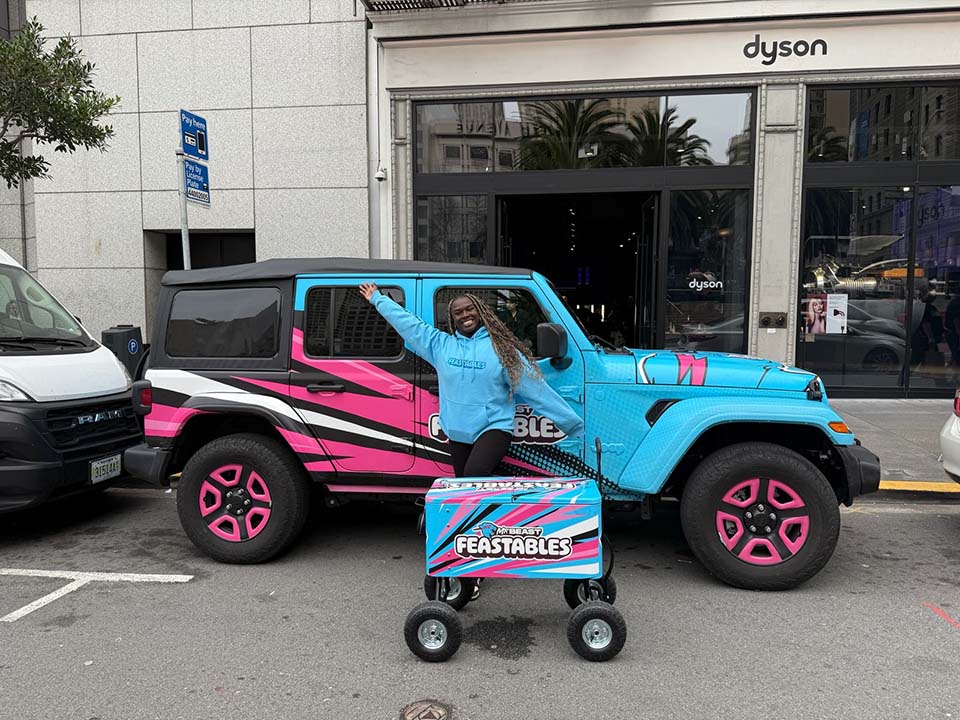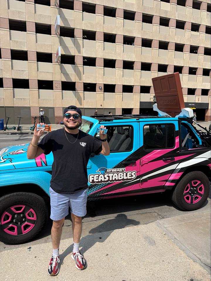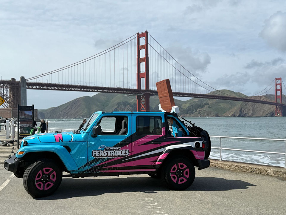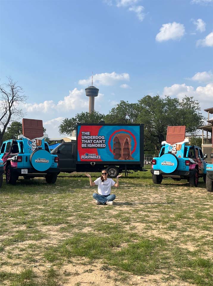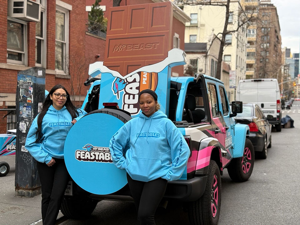 For the March Madness Final Four, we rolled out four custom Feastables trucks. Each featuring a giant chocolate bar strapped to the back and wagons overflowing with Feastables chocolate. Part of the Feastables Campus Blitz, this activation brought the excitement (and the chocolate) to college campuses across the Southeast. Students in campuses across the region got to enjoy sampling MrBeast’s chocolate!
