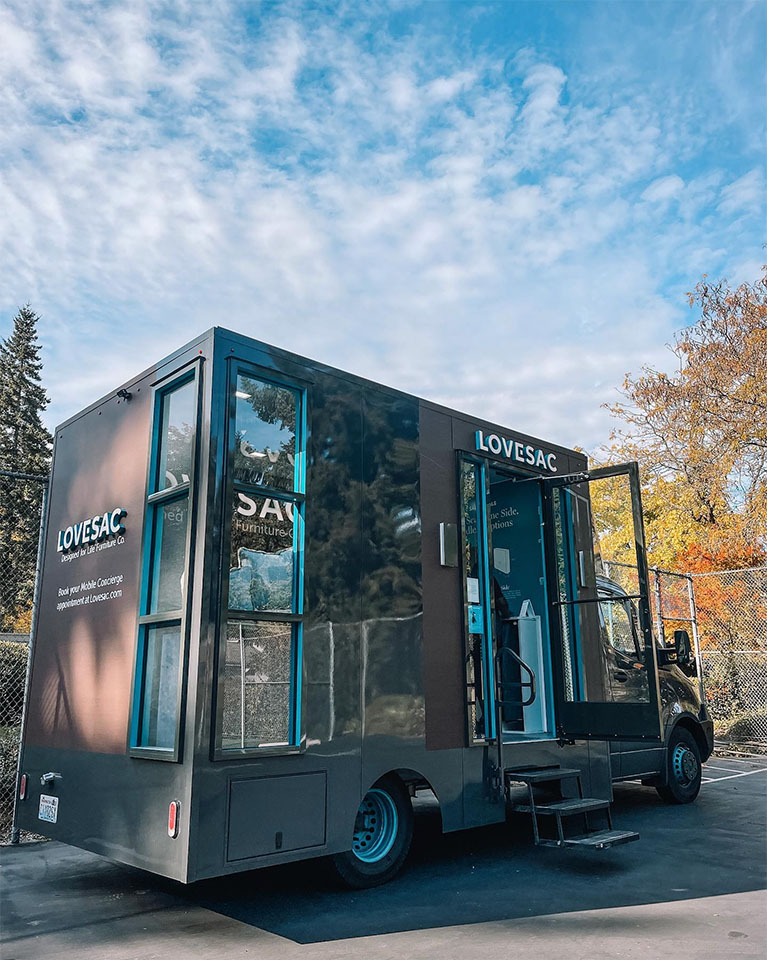 We built the Lovesac Mobile Concierge, a traveling showroom meant to bring the brand’s furniture directly to customers homes. The mobile unit allowed shoppers in markets like Washington, D.C. and Seattle to book private appointments for an interactive demo of Sactionals, explore fabric options, and receive personalized design consultations. Customers could experience, customize, and purchase products on the spot with fast & free shipping. It was designed as a stress-free alternative to traditional retail. Delivering a personalitized and unique shopping experience.