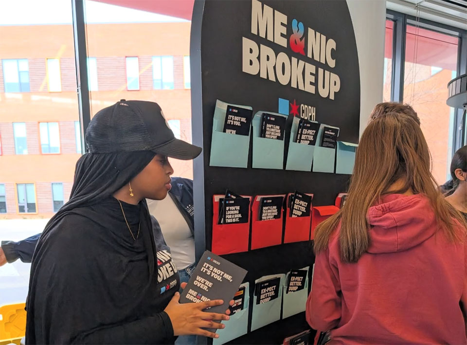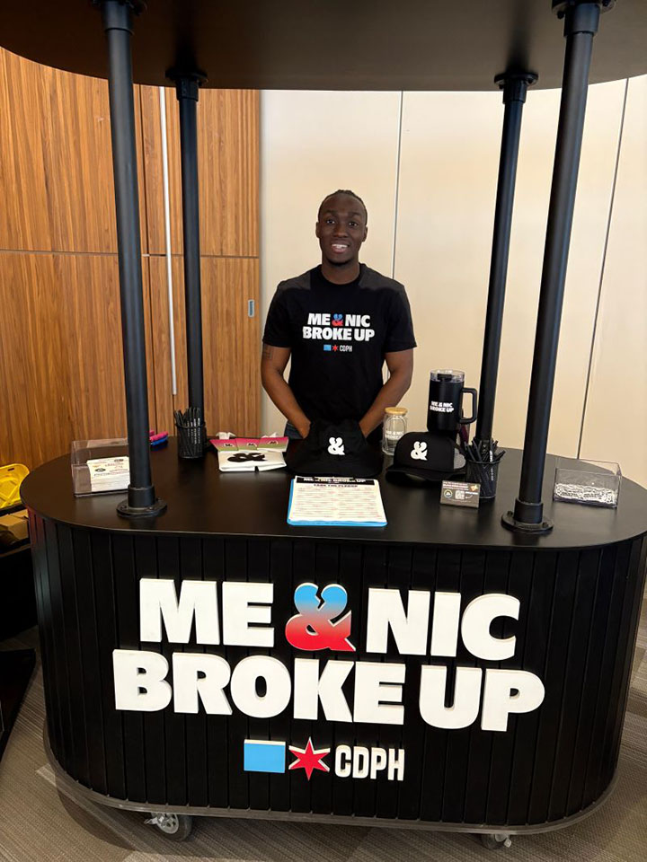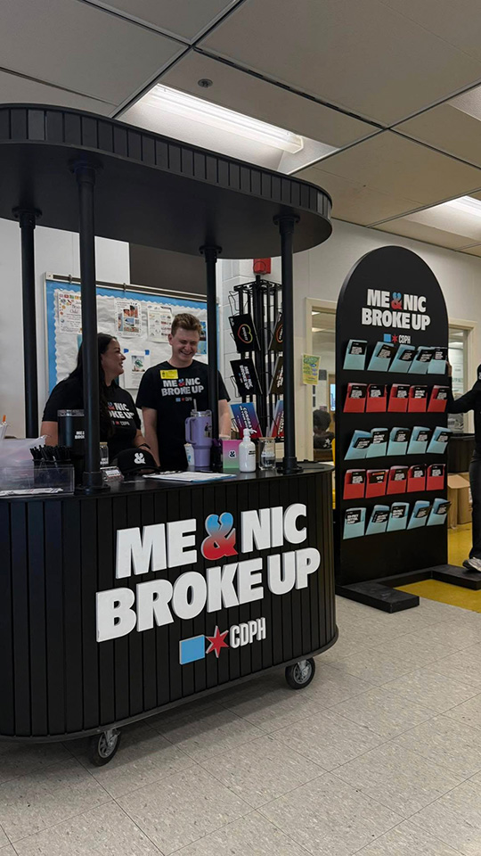 We built a mobile promotional booth for the Chicago Department of Public Health’s Me & Nic Broke Up campaign, an initiative empowering Chicago youth to “break up with nicotine” and live vape-free. The portable, on wheels exhibit traveled to schools and teen opportunity fairs across the city, educating and spreading awareness. At events like Taft High School’s campaign visit, students received real facts and resources about the dangers of vaping, while also learning about CDPH’s $2,500 scholarships for those committed to staying vape-free.
