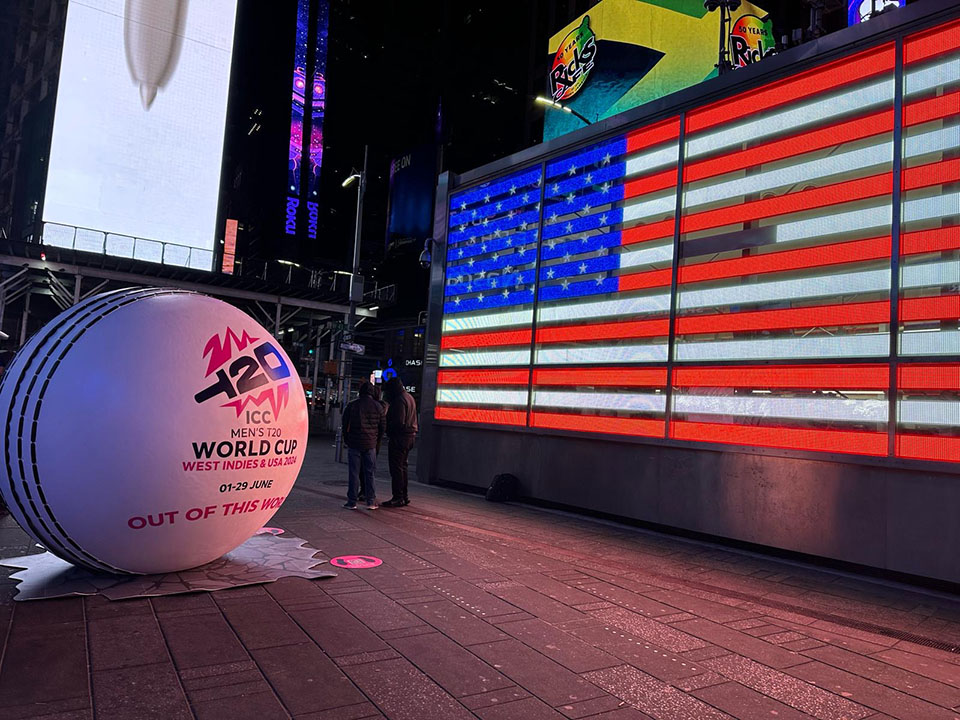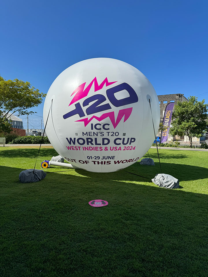 We built the giant inflatable promotional ball for the ICC Men’s T20 World Cup 2024, a major international cricket tournament co-hosted by the West Indies and was the first ever major ICC event hosted in the United States; expanding to 20 teams for the first time. The ball was a central feature of the tournament’s “out of this world” campaign and traveled to host cities like Dallas, Fort Lauderdale, and Barbados. It also marked key milestones, including ceremonial “100 days to go” downtown drops held in these locations.