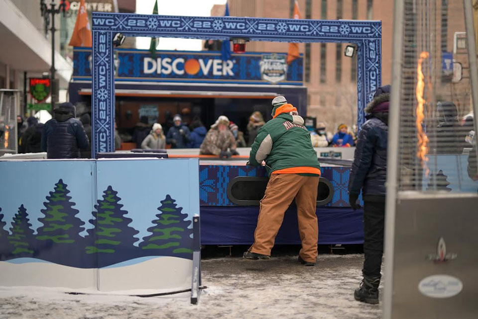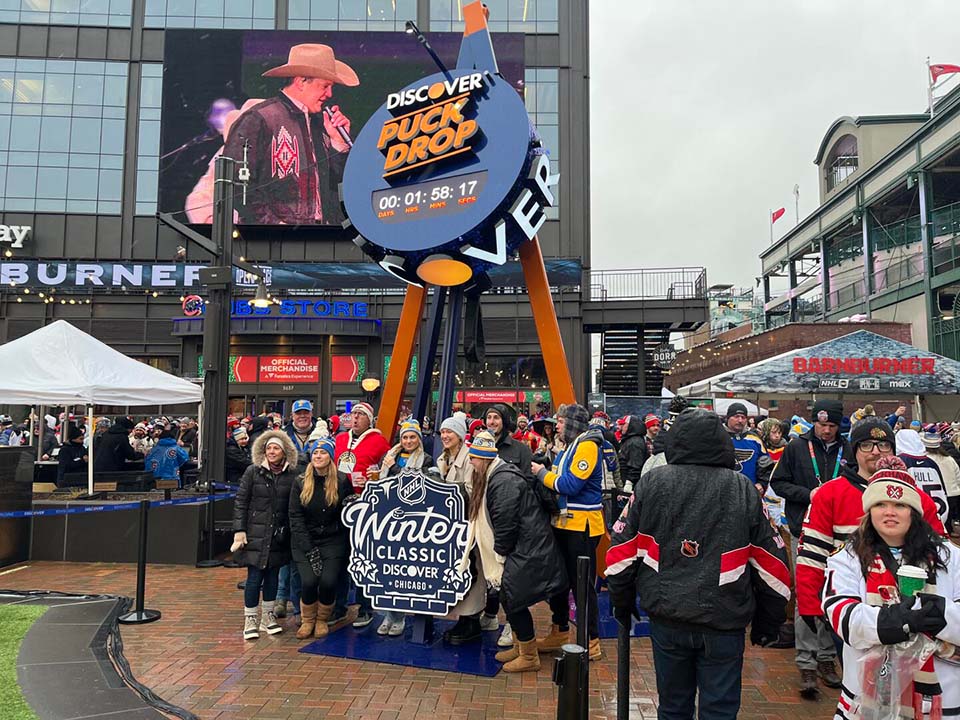 For the Discover NHL Winter Classic at Wrigley Field, we built the centerpiece attractions of the Discover Puck Drop Experience: a custom oversized air hockey table and the signature Puck Drop countdown. Part of the NHL PreGame festival, this immersive activation gave fans the chance to play giant air hockey with friends, snap AI-powered photos at center ice with Chicago landmarks, and take home premium giveaways and Winter Classic memorabilia. Special guests, including hockey legends, stopped by to add to the excitement. By building these standout features, we helped create a festive, one-of-a-kind fan experience that blended hockey tradition with New Year’s Eve celebration.